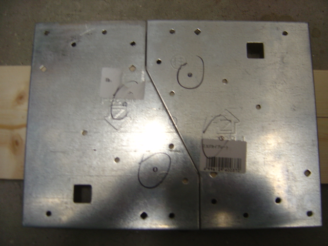 筋交いプレートにドリルで穴を開け