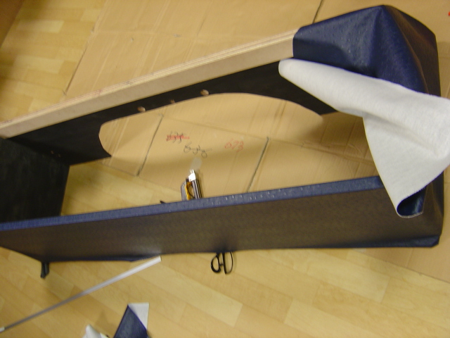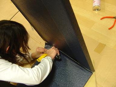 天板の当たる所は2面のレザーを綺麗に合わせ カッターで切ります