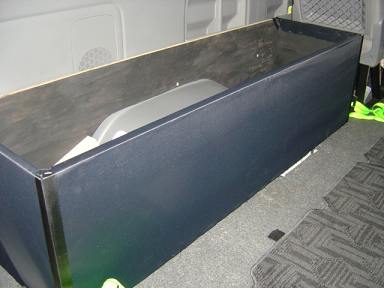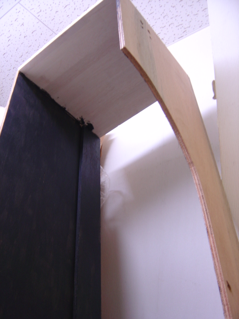 黒い生地を貼る為 合板にスプレーボンドで接着し